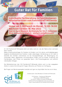 Bis Sommer bietet der Familientreff Mittweida an jedem dritten Mittwoch des Monats von 12 bis 14 Uhr im Haus Neuland eine kostenlose Fachberatung rund um Familienthemen an. Herzliche Einladung an alle Interessierten – eine Voranmeldung ist nicht erforderlich.