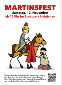 Herzliche Einladung zum diesjährigen Martinsfest in Hainichen. Es findet ab 16 Uhr (Beginn Programm um 17 Uhr) im Hainichener Stadtpark statt und wird wiederum von zahlreichen Akteuren getragen.